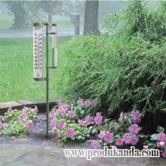 The AcuRite Rain Gauge & Thermometer combination stands 48" tall and measures up to 8" of rainfall.
